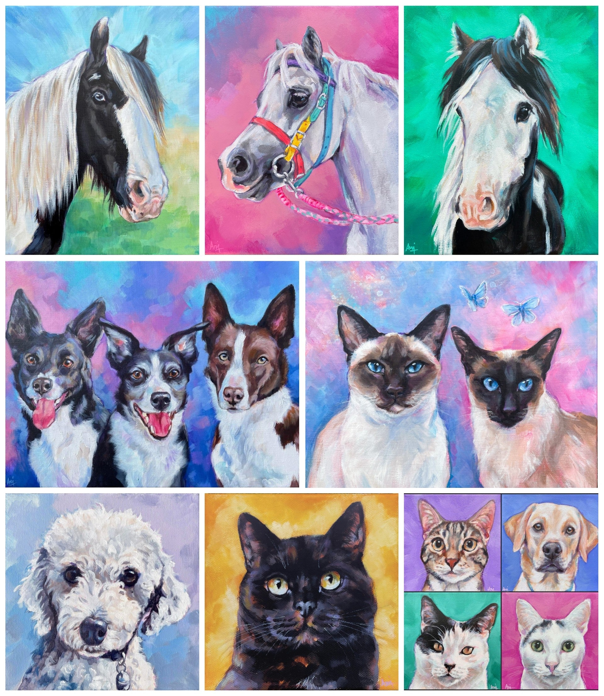 Anj understands the bond shared with a four-legged friend having horses and dogs of her own. And what better way to celebrate that love than with an original one-off piece of art to hang in your home and keep the memories made, alive.